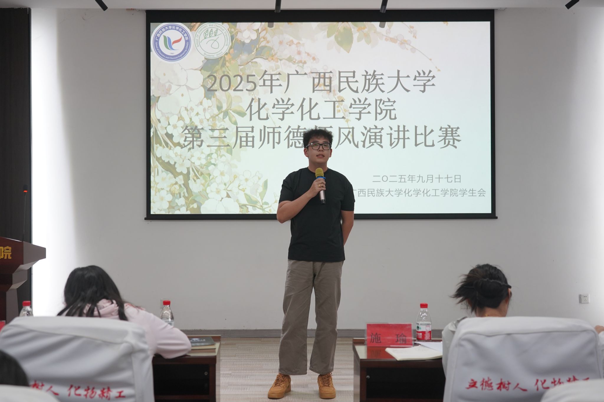 9月17日晚,化学化工学院在扬帆楼109会议室举办第三届师德师风演讲比赛。本次比赛由学院学生会学习部承办,学院辅导员施瑜、宋诗缘、管彤、李申桢、田一显和韩冰洁出席本次活动。