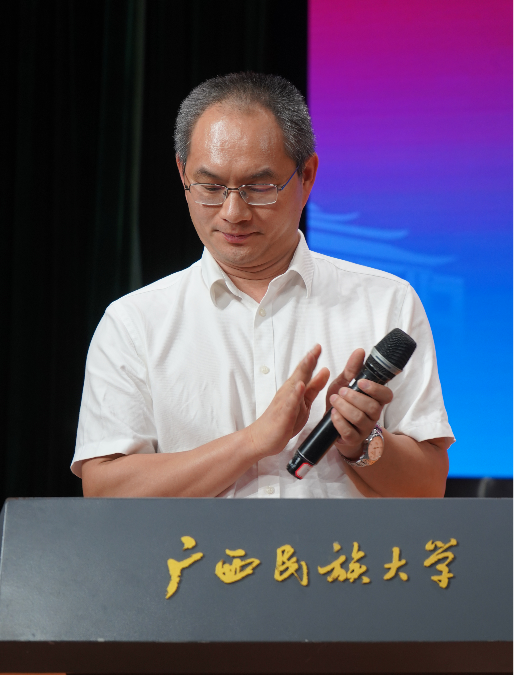 院长刘绍刚以《化启新篇,工创未来》为题致辞。他从办学规模与师资队伍、学位点建设及办学层次等方面介绍了学院近年来的发展亮点,并强调了树立远大理想、培养自主学习与创新能力、注重品德修养和身心健康的重要性。呼吁新生珍惜大学时光,努力成为德智体美劳全面发展的卓越人才,为实现中华民族伟大复兴贡献力量。