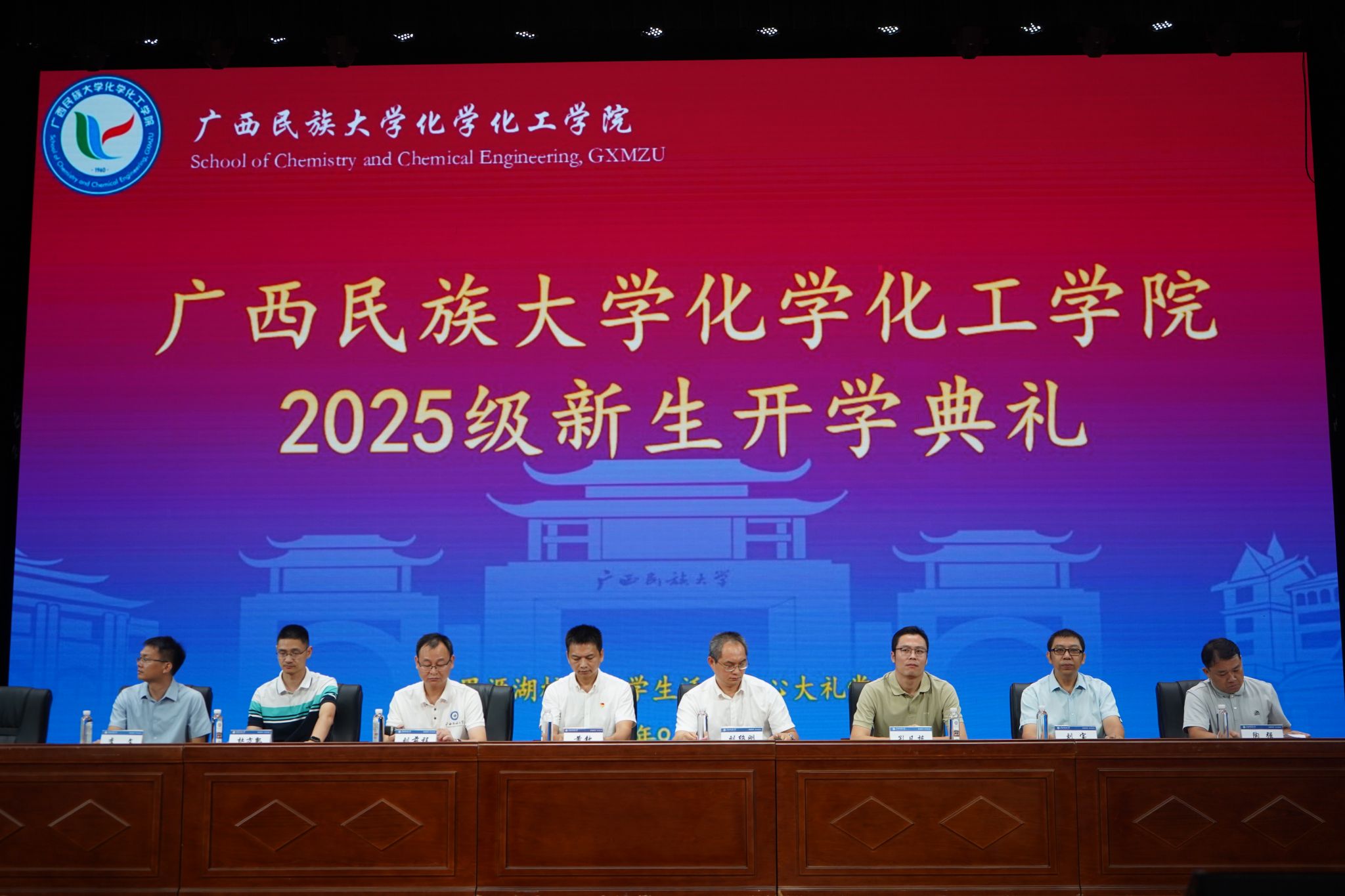 9月21日晚上,化学化工学院在思源湖校区大学生活动中心大礼堂举行2025级新生开学典礼。学院党委书记黄钦,院长刘绍刚,党委副书记刘前程,院长助理杜方凯,学院各系主任代表,新生班主任,教师代表和868位本硕博新生共同参加。活动由刘前程主持。