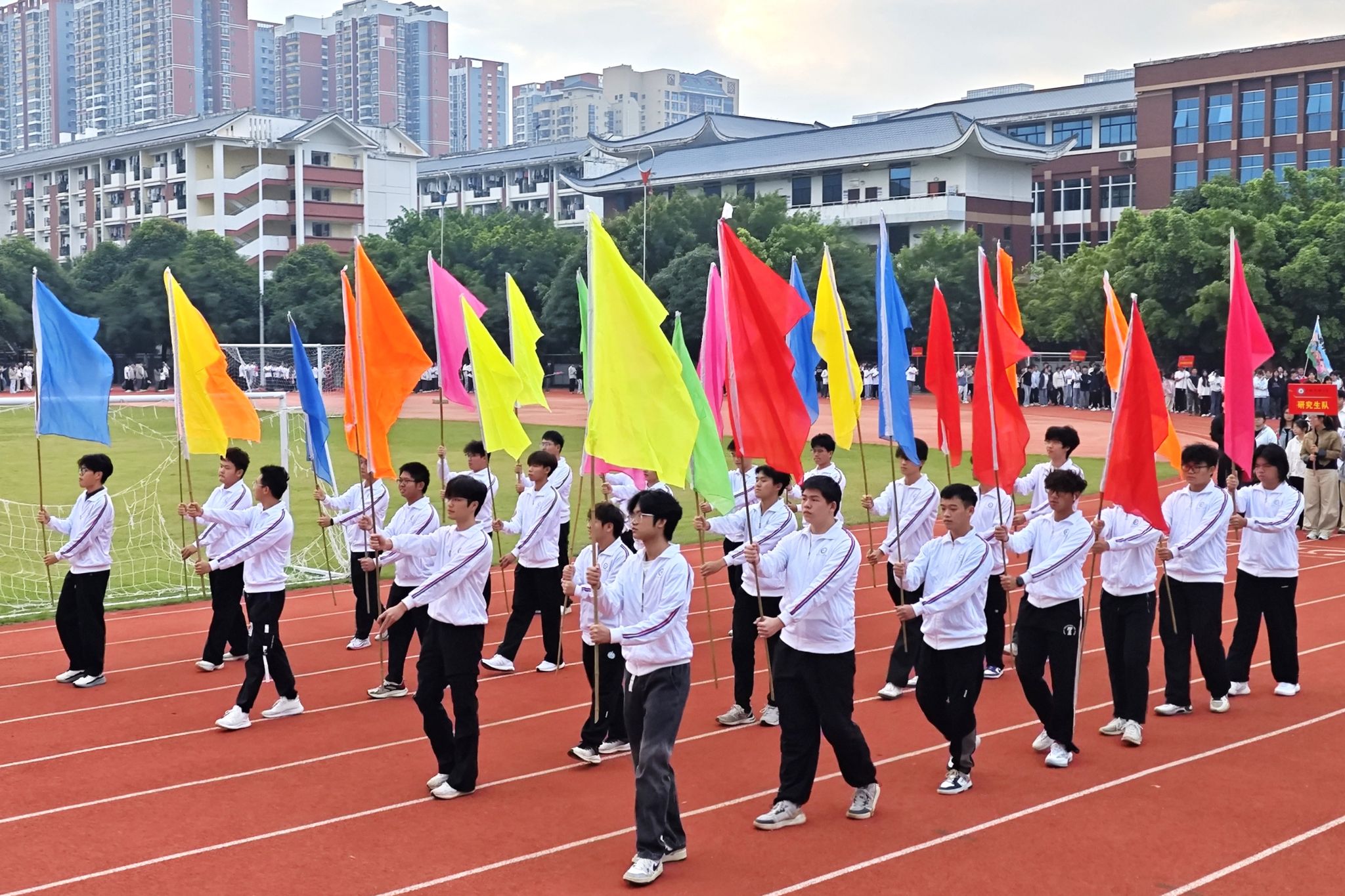 运动会开始,各方阵代表队踏着整齐的步伐有序进场,开幕式在拉拉队舞动的旋律与嘹亮的国歌声中正式开始。运动员代表黄恒烨同学上台宣誓,裁判员代表韦彦仟同学介绍裁判员具体工作,并立下维护竞赛公平的誓言。