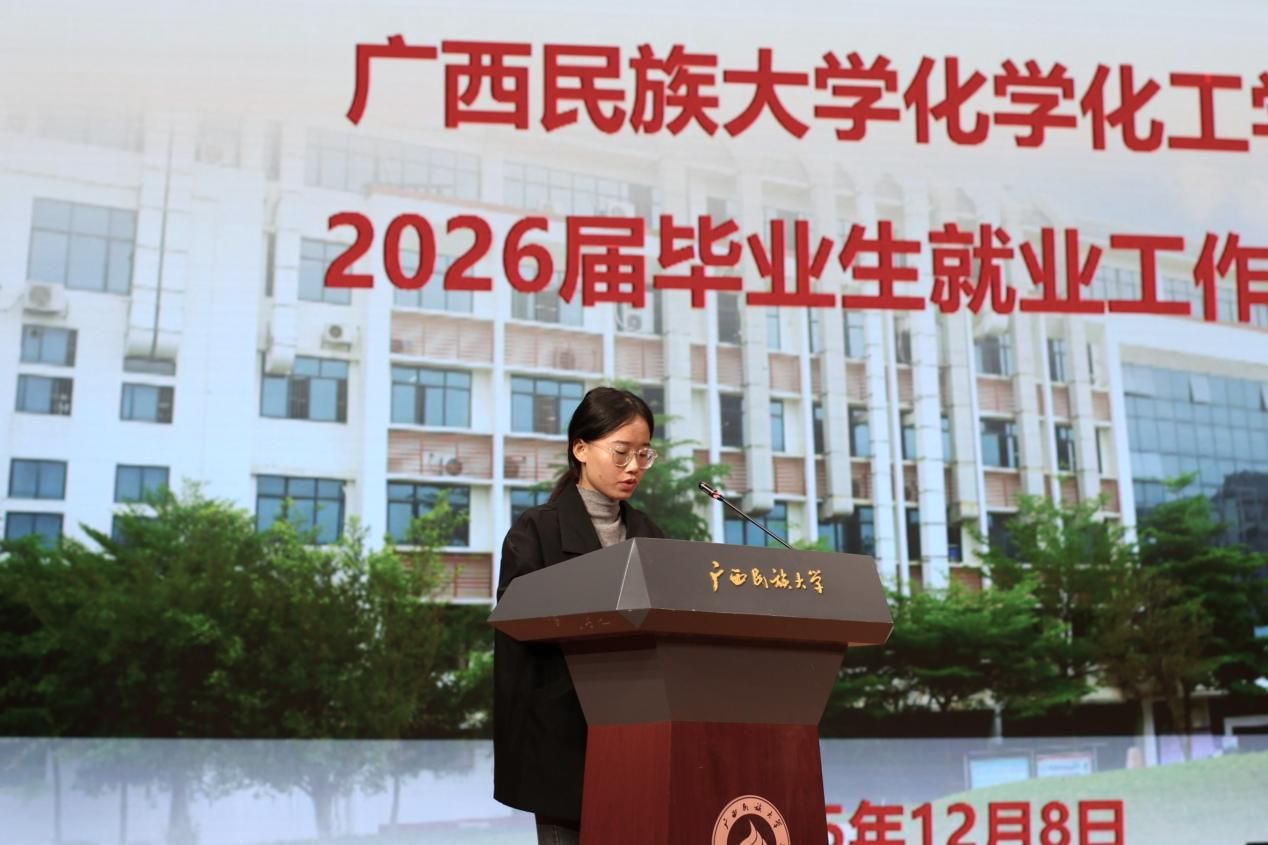 会上,黄扬东、冯玉玲两位毕业生代表,结合自身求职经历,细致分享了简历优化、面试技巧等实战经验与个人心得体会,为在场同学提供了鲜活的求职参考。随后,刘前程传达全区就业会议精神,他指出2025届学院总体就业率稳中有升,考研率创历史新高,就业质量与毕业生就业竞争力持续提升,但仍存在部分学生职业规划模糊等问题;同时明确2026届毕业生人数增加,就业形势依然严峻。针对这一情况,他强调要重点部署四项工作:强化责任分工、拓宽岗位渠道、提供精准服务、深化产教融合,并通过推进“五抓五必须”机制,确保各项就业举措落地见效。