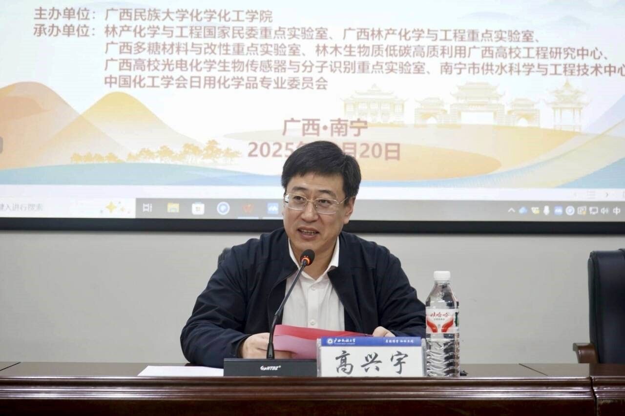 高兴宇在致辞中对与会专家学者表示热烈欢迎和衷心感谢,并介绍了广西民族大学的发展历程,从学科建设,教学成果,科研成果转化等方面介绍我校化学化工学院的概况。高兴宇表示,广西作为中国面向东盟开放合作的前沿和窗口,既是连接国内外市场与东南亚资源腹地的桥梁纽带,更是生物质资源研究与产业化应用的重要阵地,开展东南亚特色生物质资源高质化利用的学术研讨与技术合作,不仅能激活区域资源协同开发潜力,更能为我国“双碳”目标实现,为生态文明建设与区域经济高质量发展注入强劲的动能。