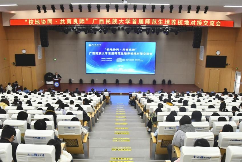 为精准对接基础教育需求,共探师范生协同培养新路径,2025年12月28日,广西民族大学在相思湖校区隆重举办首届师范生培养校地对接交流会,由化学化工学院承办,以“校地协同·共育良师”为主题,汇聚全区41所中学,70余名各校书记、校长,教育部门负责人、骨干教师及各师范专业学院师生代表500余人,通过主旨报告、分论坛研讨、教学展示等形式,共商师范生培养大计,为服务广西基础教育高质量发展注入新动能。