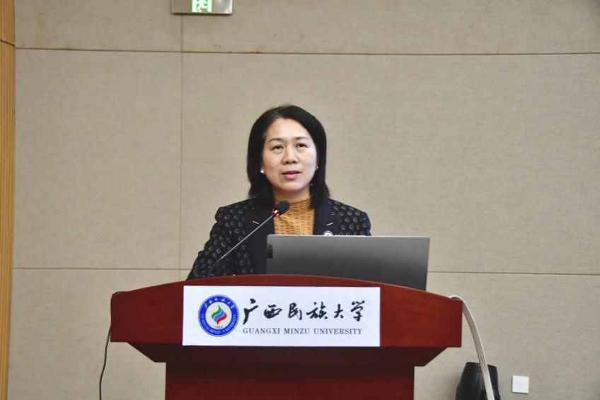 图3 12月29日,韦喜凤在广西民族大学首届师范生培养校地对接交流会上作专题报告