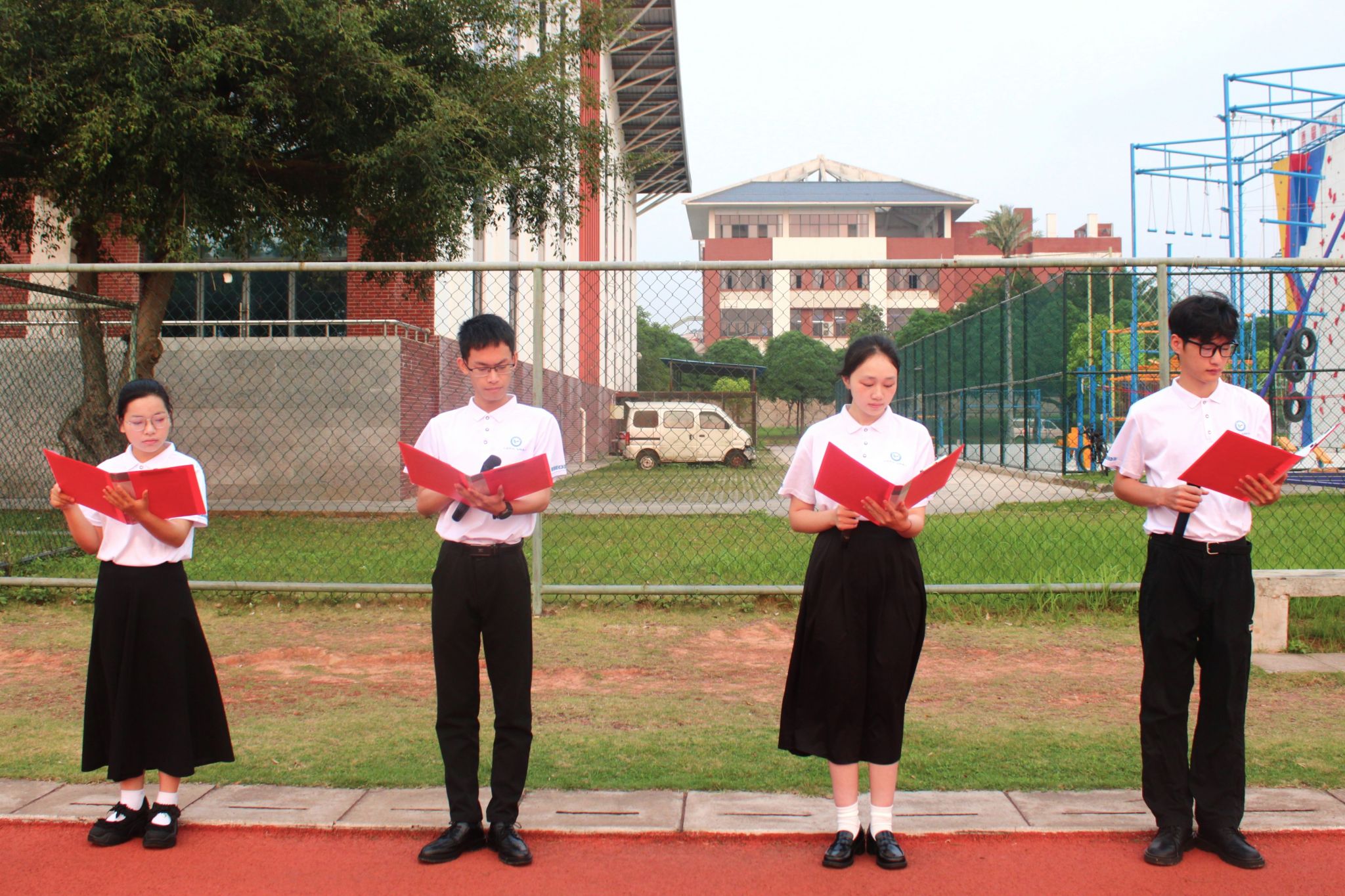 4月13日,我院在思源湖校区李宁田径场举行2026年春季学期升旗仪式。学院党委书记黄钦,院长刘绍刚,党委副书记刘前程,团委书记王妃,辅导员施瑜、韩冰洁等教师与全院学生参加活动。